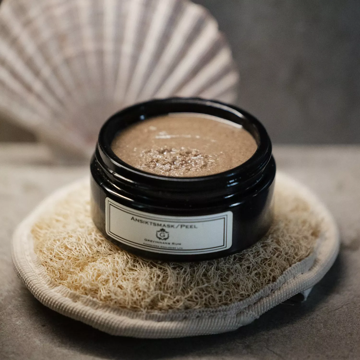Ekologisk och vegan exklusiv ansiktsmask och ansiktspeeling i samma burk. Du kan själv välja om du vill peela huden eller om du vill lägga en djuprengörande, återfuktande, uppstramande ansiktsmask. Allt detta gör denna lyxiga produkt för din hud. Den passar alla hudtyper från den allra torraste och känsligaste till acne. Råvarorna som vi har i anpassar sig efter din hudtyp och ger den det den behöver.