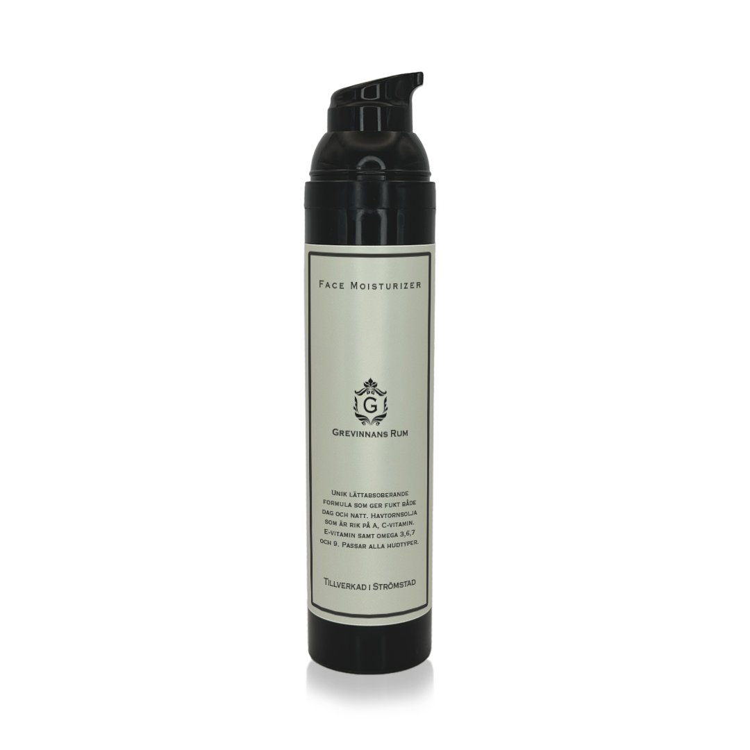 En intensivt fuktgivande och anti-age ansiktslotion som ger huden långvarig näring. Face Moisturizer passar dig som söker ett kraftfullt men lättabsorberat alternativ för daglig hudvård. Med sin silkeslena konsistens återfuktar den huden på djupet utan att kännas tung. Förpackad i en stilren svart airless-flaska som skyddar innehållet mot ljus och oxidation. En effektiv, prisvinnande favorit för alla hudtyper.